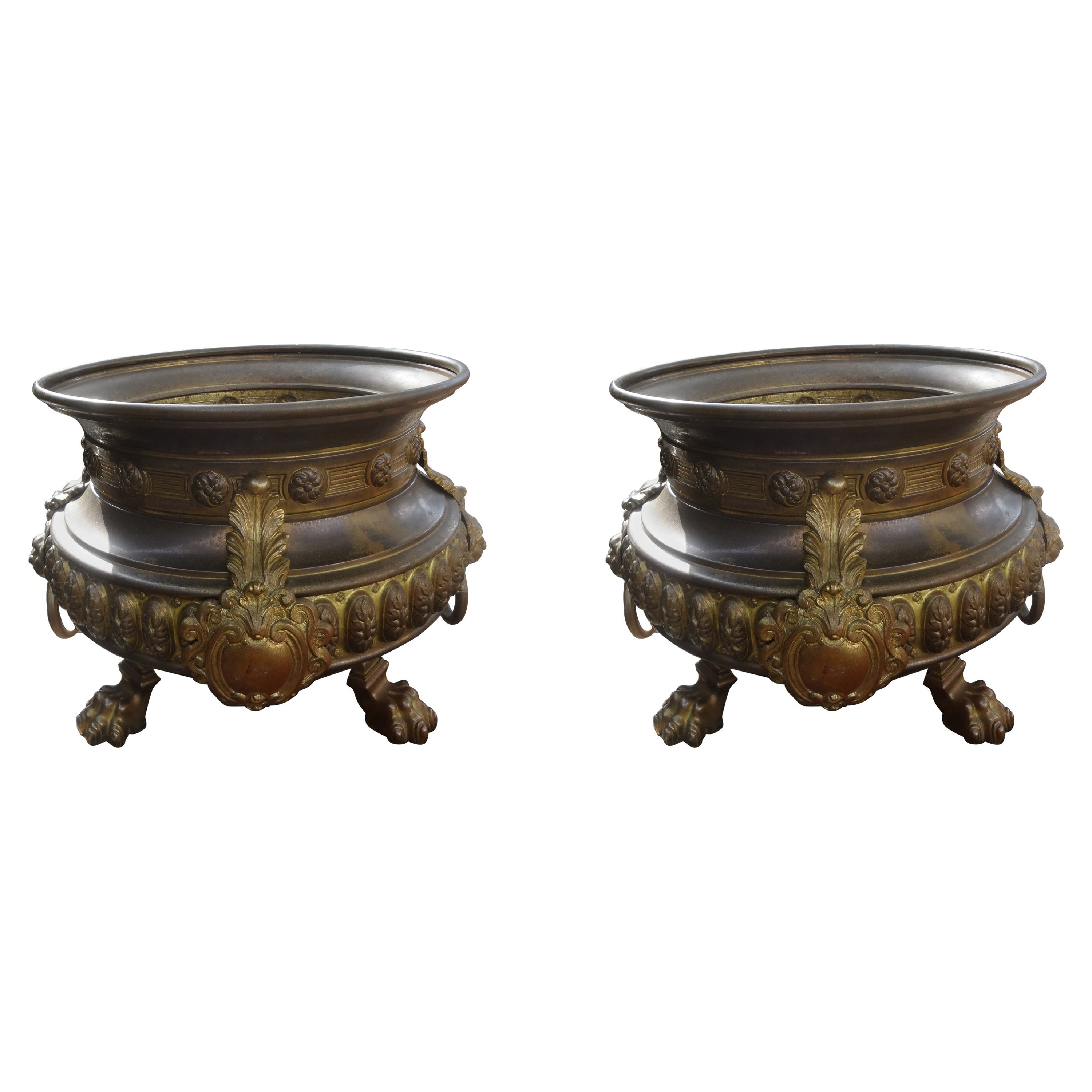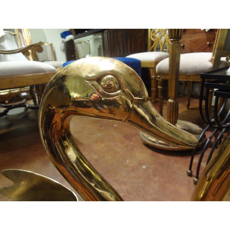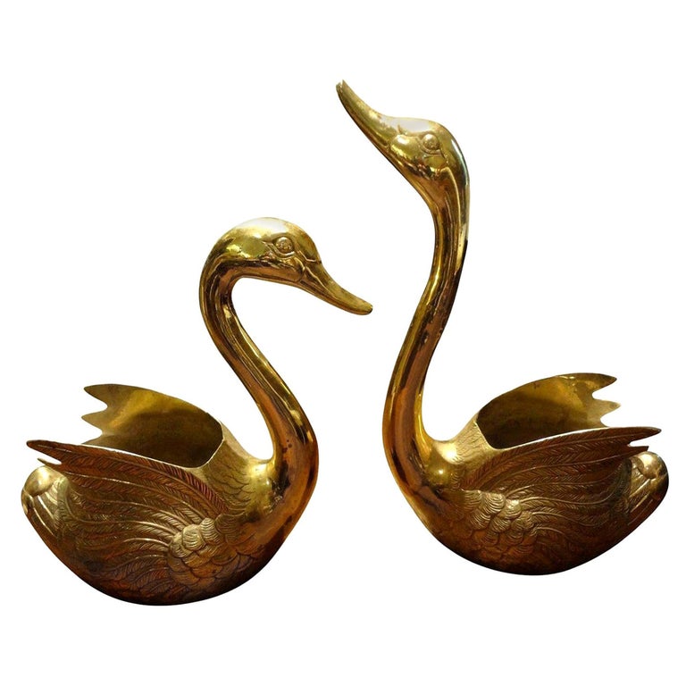 Pair Of Vintage Brass Swan Planters At 1stdibs